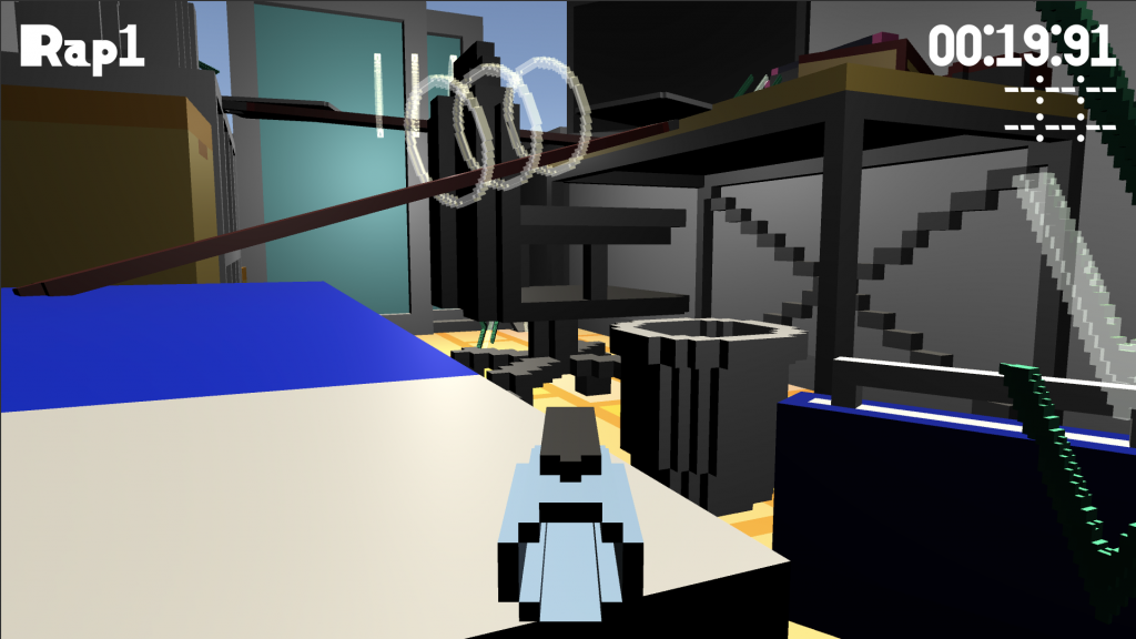 ステージは高低差があり触れると一定時間スピードが上がるリングをくぐりぬけることでゴールまでの時間が早くなります。