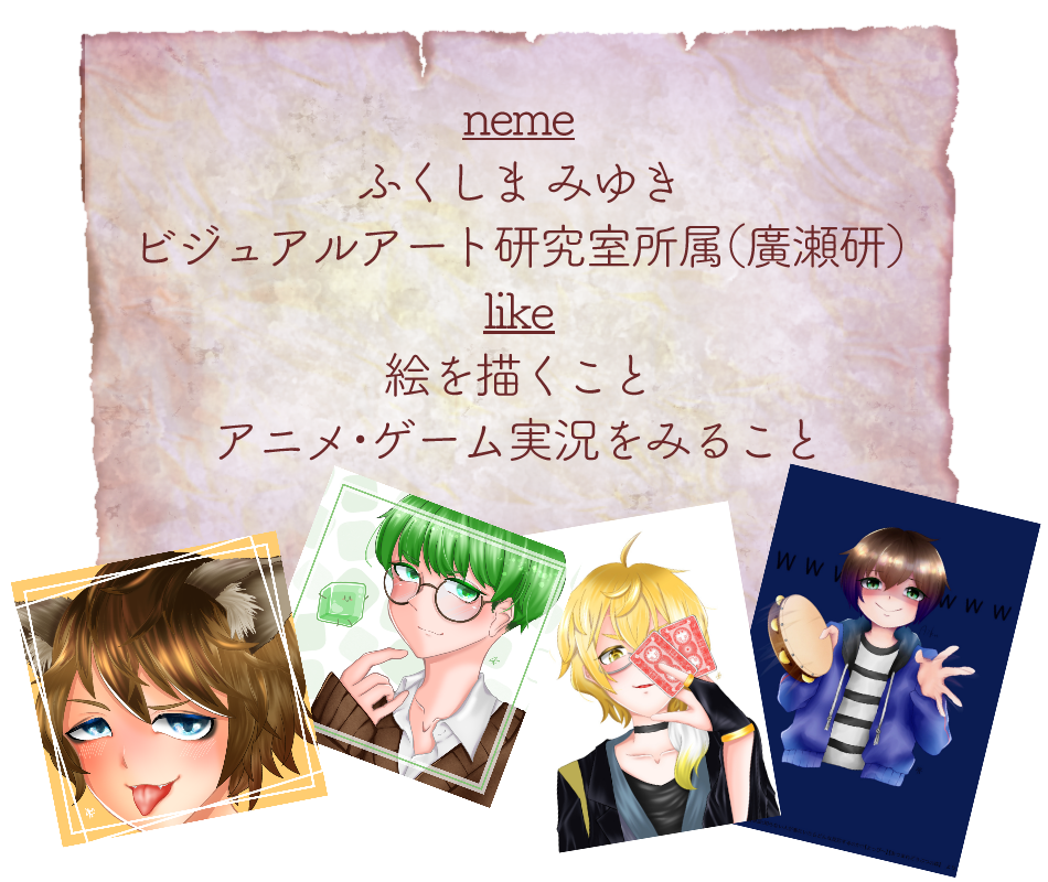 廣瀬先生から、卒業制作は最後の制作ということで、いやいや制作するのではなく自分が楽しく制作したいと思うものがいいと言っていました。