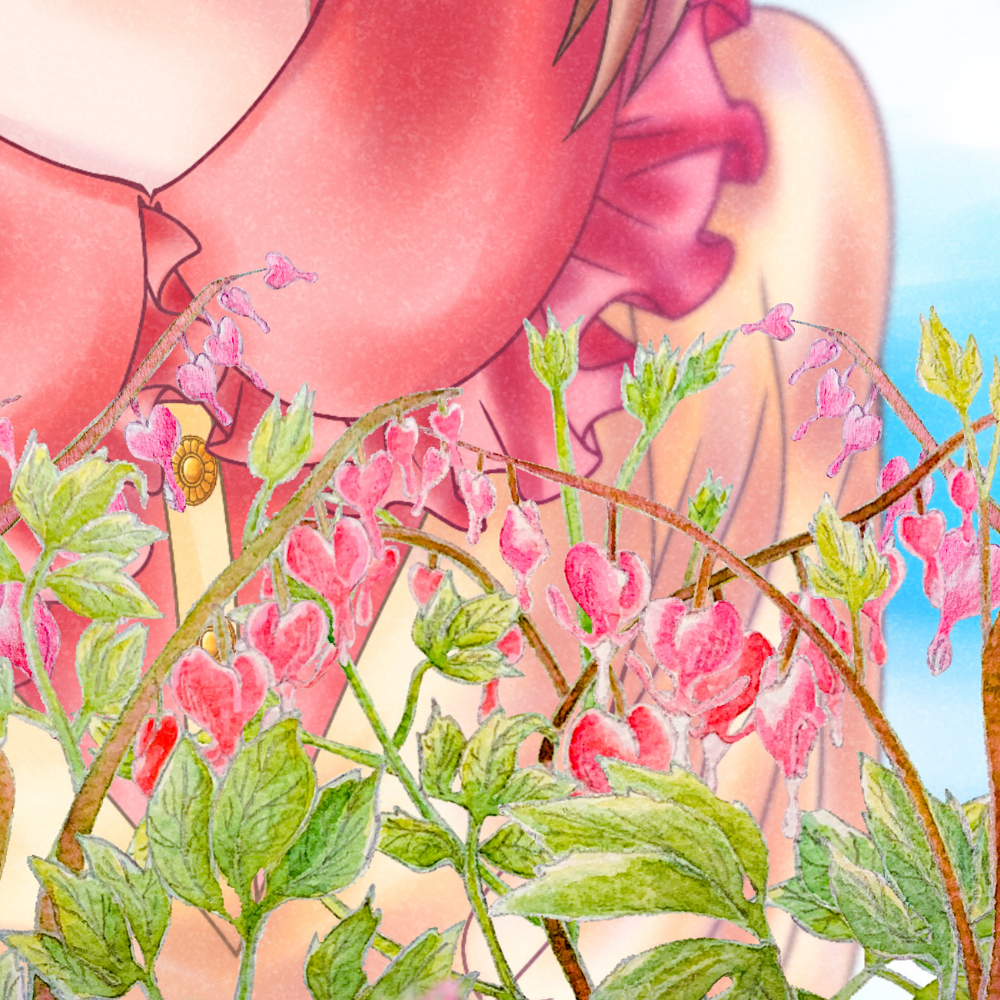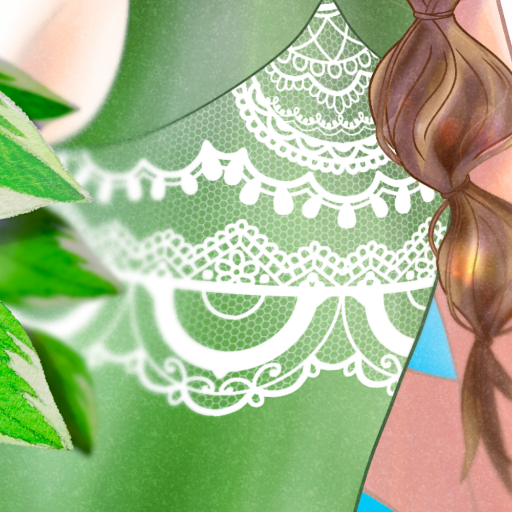 植物の色を目立たせるため、人物はあまり派手にしない。